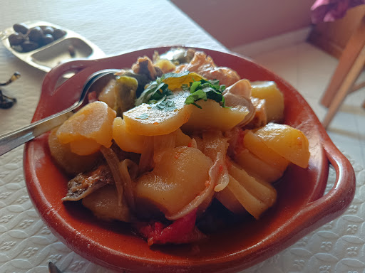Me and my partner had lunch here. It’s a nice, traditional place by the roadside. People were friendly. It was full of truck drivers, which I feel is a good sign. We ate barbecue chicken (frango de churrasco) and pork with clams (carne de porco à alentejana). Both dishes were tasty and plentiful, more than enough for two people on vacation. For the dishes, a soft drink each and a decaf we paid 20€. The chicken was tender and juicy, it had a nice garlic sauce on top and was served with salad and French fries. The pork was surprisingly lean (I did not spot any fat on the bits I had), served with pickles and hand cut fries. It was loaded with parsley and coriander, which made the dish feel lighter. 5/5...