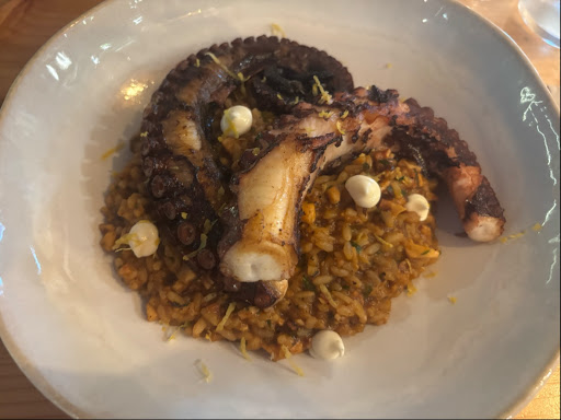 The restaurant itself is relatively small. The food was amazing though, every single dish. We got the softshell crab sandwich to share. It’s one of the pricier appetizers for one slider-sized sandwich, but it’s softshell crab and tasted amazing! My husband got the beef tenderloin sandwich, which looked like literally a piece of beef in between bread, but the beef was juicy and soft. The bread was crispy on the outside and fresh with a great garlic butter spread. The fries were crispy. I got the grilled octopus, and there was so much octopus considering the rice was also filled with chopped bits of octopus. The flavors balanced so nicely. We (really my husband) ordered chocolate mousse for dessert. I don’t like mouse, but I liked this mousse. Not sure my husband liked that my tastes suddenly changed 😆 The strawberry pieces added a hint of berry flavor and a great crunch, and the mouse was not light like whipped cream and not thick like pudding, almost a truffle...