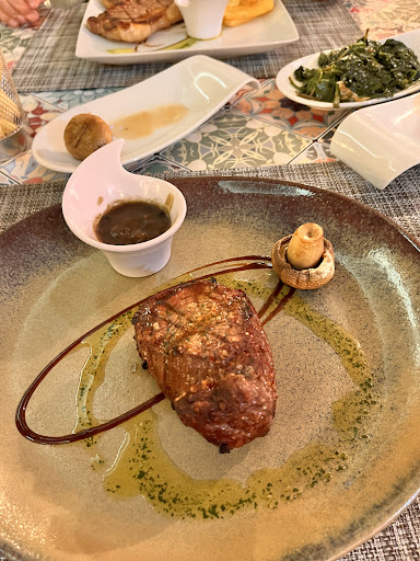 Read moreFood was excellent I had the 300 grams steak rare with sauted mushrooms and a potatoes au gratin. The restaurant has a bar at the side where you can have a drink or sit on the patio outside. You can eat on the patio or go in the restaurant to eat, the atmosphere was good, maybe some background music would help but that's only me. All in all a great place for food and a drink...