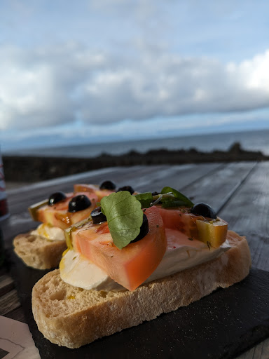 Iniziamo con un aperitivo il primo giorno sull'isola si Pico. Il posto è vicino la casa in cui alloggiamo, davanti il mare, fa le tapas. Che vuoi di più? Ne proviamo diverse: a bulhao Pato (una sorta di crostino/bruschetta con i funghi), caprese açoriana (lo stesso ma con un formaggio fresco e pomodori), una tabua açoriana (tagliere di formaggi delle Azzorre) e delle Lapas grigliate. Non delude!
