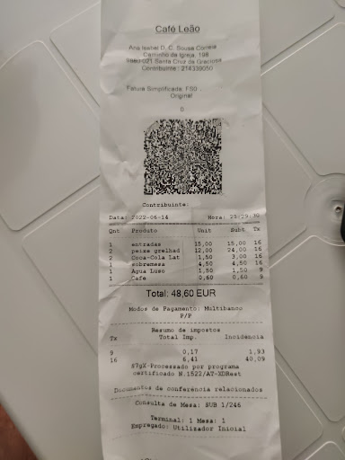 No fim , a fatura ! Um drama, senti que estava a pedir a coisa mais estranha do mundo , quando o que se espera é que seja emitido sempre , o restaurante só tem que perguntar pelo NIF do cliente . Pareceu que alem de tudo o que referi em cima , que, alegadamente, não declaram as refeições vendidas , eu fiquei com essa ideia .