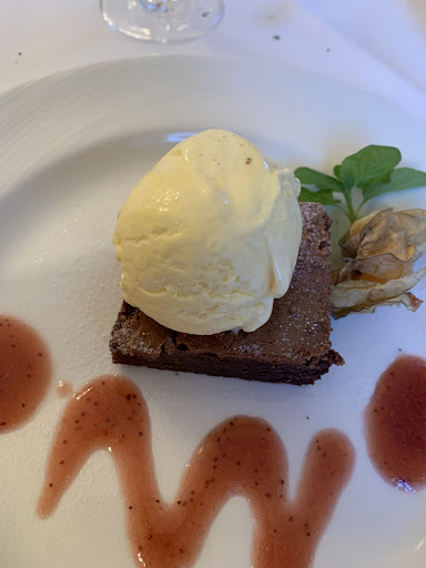 Read moreFish, meat, duck, veal, chicken, vegetarian to choose from. I had Bream, my husband had veal both delicious. Service was very good. Book beforehand as we did if you are not staying in the hotel. Portions in our opinion are ideal. Excellent selection of deserts. Walking distance...