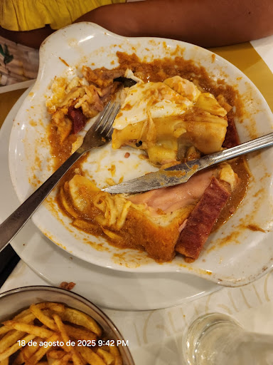 Read moreO serviço de mesa foi rápido e simpático. O serviço de cozinha foi horrível. A francesinha estava péssima, o pão não estava torrado e ficou imediato empapado e a desfazer -se. A linguiça e a salsicha foram a pior parte, saíram diretamente de dentro da embalagem para dentro do pão. A salsicha de lata, corrente, estava mole e fria e a linguiça com pele e dura. Nada passou pela torradeira ou grelhador para além do bife, graças a deus, foi uma péssima refeição. Para acrescentar quando chamamos o funcionário de mesa para podermos resolver a questão ele dirigiu-se a cozinheira que disse em bom som " as coisas vão ao forno e cozinha tudo lá dentro" e recusou-se a vir a mesa. Pelo que veio o funcionário de mesa pedir desculpa humildemente, mas apesar da simpatia não se resolveu nada. A acrescentar a esta má reação quando chegamos foi-nos dito que não podíamos pedir comida de forno porque o mesmo estava avariado. Pelo que a francesinha ou foi ou microondas ou nem foi a lado nenhum. Nada foi resolvido, comemos alguma coisa porque tínhamos fome, e pagamos um dia de trabalho... 😏 Além disso estava o ar condicionado muito frio, os talheres cheios de manchas.