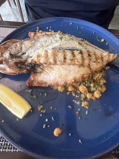 Si no eres portugués mucho ojo. Te llevan una carta impresa en una hoja pequeña de color naranja, esa es la carta para NO PORTUGUESES. Tienes que pedirle la carta normal, de lo contrario te cuelan lo que a ellos les interesa. OJO con el COUVERT son 26€. No pidáis el BACALAO ESPIRITUAL 18€, te lo venden como bacalao y no te explican lo que es, ya que en realidad es una especie de "ensaladilla" de arroz y fideos con UN POCO de bacalao y queso gratinado por encima, bacalao seco, oxidado y escaso. Tienen un bife con salsa, queso y patata frita, la ración entera son 34€... Por supuesto estos platos están en la "carta" naranja y los pedimos porque nos hicieron creer que era todo lo que tenían. Cuando mas tarde llegaron unos portugueses les explicaron todo clarito, entonces yo les pregunté por la otra carta y me dijeron que lo habían hecho por nosotros, pq si pedíamos algo que no estaba en la "carta" naranja igual teníamos que esperar 1 hora para comer y al vernos con un niño pequeño sabían que íbamos a Perlim y que igual teníamos prisa... En fin unos aprovechados, y por cierto el PELO morenote que me salió, en el aborto de plato de bacalao que me trajeron... al final es lo de menos. He sido camarero muchos años en zona de costa y primero veo personas y luego turistas, no al revés. Les queda mucho por aprender a estos espabilados por muchos CARROS MERCEDES QUE TENGAN APARCADOS...