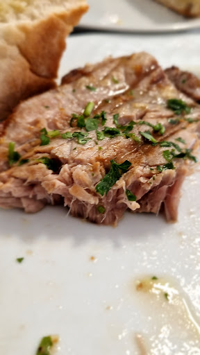We love this place! We went there during the lunch break of an organised tour and didn't opt for the place the guide was 'selling' for a pre-order. Instead, we checked maps and found this gem. When we arrived the place was almost packed with locals and members of the local police force were enjoying a coffee at the bar. We received a warm welcome and were lucky enough there was a table left. The suggestion of the day was a steak of fresh (catch of the day/night) tuna and we went all in for that and started with the Madeiran garlic bread. The tuna was fantastic and accompanied by a diversity (and quantity) of local preparations of boiled potatoes, heavenly polenta, beautifuly prepared string beans and great tasting (local) rice, the latter of which I'm not a fan unless cooked like this. There was so much food on the plate and everything was tasting so good, it was difficult to decide what not to eat. Though we had been looking for a more traditional cuisine for over a week in various places in and around the capital, this was the kind of encounter we were looking for. For us this is the highlight...