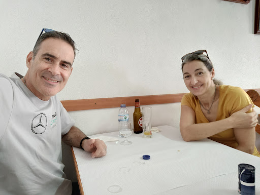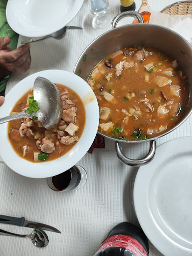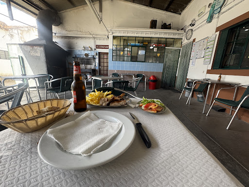 For a hungry pilgrim this is the place to have a late lunch. No need to worry about dinner, because the portions are HUGE and tasty. The chicken (frango) comes right from their big oven next to the terrace and is...