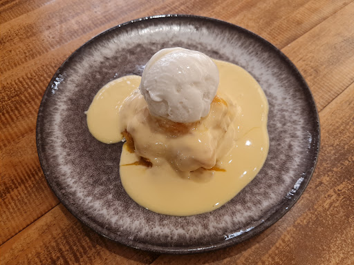 Arroz doce servido quente (5€) Muito bom, parece um pastel de nata.