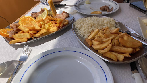 Pedi o prato do dia que logo me disseram que estava esgotado ( bacalhau a Gomes de Sá ,então pedimos algo rápido tínhamos compromisso às 14 horas ,sugeriram secretos ou plumas grelhadas .Após cerca de uma hora de espera ,o almoço não estava servido ,enquanto isso iam colocando almoço a quem ia chegando .!!Reclamei justificando ..Cerca de uma hora depois lá vieram ,duas travessas uma apenas com batatas fritas e arroz e outra com a carne e mais batatas e arroz .Preço total 31 euros ,bebemos dois panaches ,2 cafés..Mau serviço ,e caro para a qualidade!!!15 euros a dose.Nao vimos a carta nem preçário!! Muita falta de higiene sobretudo no terraço, e muita desorganização .Não...