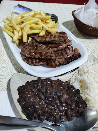 COMIDA Doses com preços elevados e meias doses com preços acessíveis. O truque aqui é pedir meias doses que satisfazem por um preço razoável. Carne Não gostámos da relação variedade/preço, pelo que optamos pelos bitoques. Bitoque de peru; nada de especial; bem servido com batata, arroz e ovo. Peixe Aqui já era possível escolher pratos a preços razoáveis, destaco o Bacalhau e o Salmão. Sobremesas. Pouca variedade de frutas. Mousse de chocolate: nada de especial também.