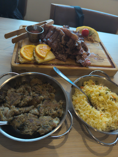 Looking for a place to eat, I had made a previous search in the morning, nothing below 4.5 with a fair amount of reviews, funnily enough I made this search on an esplanade of the only below 4.5 restaurant in the area. Everything was pretty much rated as 4.5 with the few notable exceptions, being this restaurant one of them with 4.6 and having the highest number of evaluations. Called around 14:30 to check availability and if they were still serving, had no idea what type of restaurant it was. Arrived, was kindly greeted and accepted all the suggestions of the very professional and very courteous waitress. But nothing would prepare me for the absolutely storm of rich flavours I was about to be greeted with. Not having looked at the menu, I recall having the bull meat, rare, with a side salad and sweet potato fries. All excelent, but the meat, the flavour, I just couldn't believe how tasty and juicy it was, I suppose mouth-watering is the best possible description. And the salad also, so many times it's disregarded, not this time, properly dressed it paid excellent company to the main dish. I have now a beautiful lemon merengue pie before me, but after this meal so far, I expect nothing less than...
