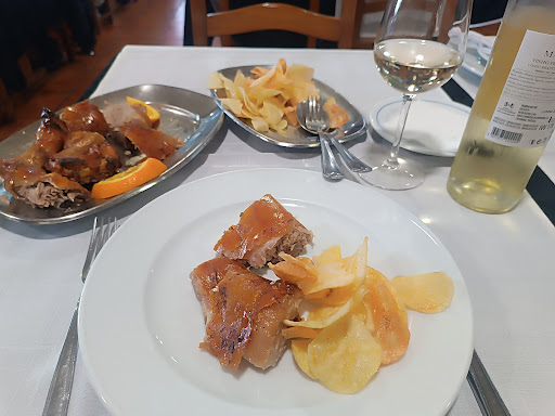 Paramos para almoçar e surpreendeu bastante. De entradas comemos presunto, pão e azeitonas. O presunto estava no ponto certo e bem fininho, as azeitonas deliciosas e o pão super fofinho.🥰 Pedimos leitão para o almoço e estava delicioso com batata frita super fininha deliciosa. Pedimos ainda vinho branco da casa que era bastante bom. O preço agradou nos imenso e de certo que iremos voltar.