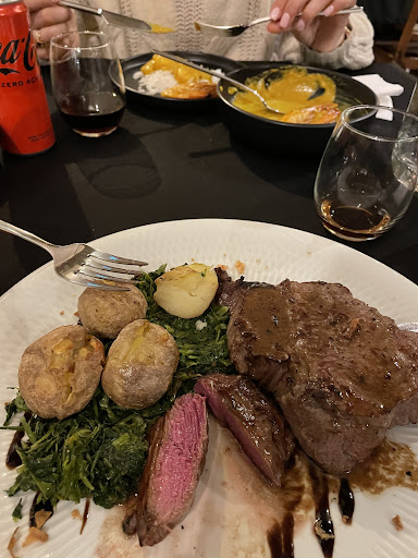 Read moreO espaço é muito bonito e acolhedor embora um pouco confuso na sua mistura de 1/2 estilos. O serviço deixou a desejar, não querendo culpar a pessoa da sala pois também estava sozinha e acredito que a posição da mesma não é fácil assim, estava a fazer o trabalho de pelo menos duas pessoas, contudo, parecia não ter muita experiência ou à-vontade em muitos momentos, não consegui perceber se era nervosismo/inexperiência ou apenas aflição com tanto trabalho. Existe de facto também alguma demora no serviço mas não crítico porque tal como é informado, os pratos são preparados na hora e isso tem o seu valor. Relativamente aos pratos escolhidos, os mesmo estavam saborosos, as carnes no ponto e com a qualidade prometida ao serem pratos preparados na hora. O preço, achei algo elevado para a oferta, o valor de uma garrafa de água retirada de uma máquina de balcão (provavelmente uma máquina de filtragem) e servida numa garrafa de vidro reutilizável (quase que impingida ao início quase que como regra) é completamente desproporcional (2,50€), o valor do couvert (5€ e tal) por meia dúzia de azeitonas + meia dúzia de rodelas de chouriço/salame + duas colheradas de manteiga aromatizada e de ervas + duas colheres de azeite, é injustificável, o cesto de pão (2,50€) para a quantidade de pão apresentado também é algo desproporcional… já os pratos tiveram um valor justo. De salientar a atenção, empatia, disponibilidade e simpatia dos donos. Agradou-me que do nada surgiu um ser de 4 patas que pelos visto estava junto dos seus donos e quantos os mesmos jantavam, por mais espaços assim!!! Não sei se foi exceção mas espero que não e que seja algo possível e normal nesta casa. Terminamos e saímos bem, sem qualquer arrependimento do local escolhido para jantar, mas com um sentimento agridoce, parecia que tínhamos entrado num restaurante recentemente aberto ainda naquela fase de confusão e desorganização e que ainda não tem as arestas bem definidas e limadas, meio que a ver qual será o caminho a seguir (por exemplo aquela forma de receber pagamentos por MBWay e ter de ir à cozinha confirmar o recebimento, por favor NÃO!). Não é uma crítica destrutiva, é uma crítica construtiva pois gostaria de numa próxima ver um funcionário (o mesmo) mais relaxado, com uma sala sob controlo (talvez com a ajuda de um colega), não ver mais as garrafas de água que vi e no fim até poder pagar o mesmo mas pelo menos ser servido com um couvert adequado ao preço e...