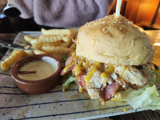 Read moreFomos em família, num dia de semana. O local tem um ambiente e decoração estilo pub muito engraçada. O serviço foi rápido e eficiente. Quanto ao prato principal, pedimos dois hamburgueres de novilho e um baco. Estavam bons. Os ingredientes eram de qualidade. Ainda assim, na minha opinião, o baco deveria ter mais queijo ou mais molho. Notava-se a falta de algo entre as duas carnes. Quanto à sobremesa, pedimos um crepe com coberturas e dois waffles com gelado. Estavam igualmente bons, mas o waffle é bastante alto e o tipo de massa é levee fofa, não é uma massa estilo waffle Belga/Liege. Pessoalmente, prefiro este último tipo de massa (gosto pessoal mesmo). Em jeito de avaliação geral, foi uma boa experiência e hei-de voltar para provar as tostas. Achei um pouco exagerado o valor cobrado pelas coberturas dos crepes e dos waffles. Ao pedir um destes artigos, já deveria estar incluída uma cobertura à escolha, já que o valor do crepe simples é 4 e do waffle é 5€....