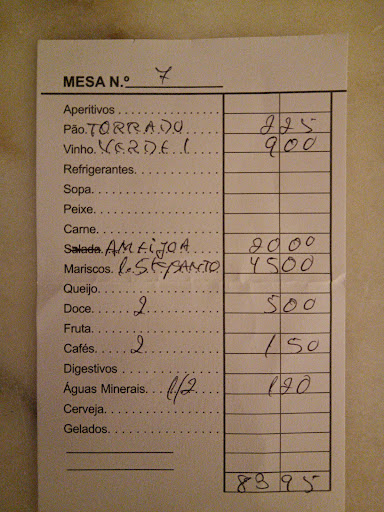 Had lunch when visiting Setubal. Restaurant located at corner of street and had name above door front but could easily miss it as nothing at door to indicate it is a restaurant. No menu, the owner showed you the seafood fish, clams, crab he had that day in his glass case and you pick what you want. It goes by the kilo. Owner did not speak English and they don’t grill here. The Garoupa was cooked with clams in noodles or rice. We had that with noodles and a hairy crab. Both were very good. We ordered two glasses of white wine and he brought a bottle and we drank it all (only €7.50). He opened a can of sardine with bread, wasn’t sure if it was for our sampling as we did not order sardine but it was so tasty (not fishy at all) I ate it all and paid for it €4.50. We got charged for the bread too, guess over here, if they serve it and you eat it, you pay for it. Luckily everything was so reasonable, we did not mind. The chili sauce he served was very good (be warned it is spicy!)...