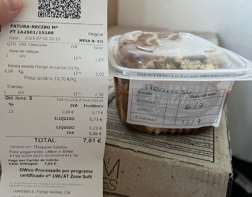 Read moreComprei um fatia de tiramisu, depois de provar descobri que tinha um sabor azedo/ácido o que é fora do normal embora ainda esteja no prazo de validade, mas com as temperaturas altas da semana passada duvido. Voltei ao estabelecimento para pedir uma solução para mim. O que me deixou com raiva foi a primeira reação da gerência a deitar culpa aos clientes, disse que o bolo contém álcool, o que não é aceitável pelos todos, que significa é o meu problema de gosto e não a qualidade do produto. Mas Srª. Gerência o tiramisu não é uma receita nova que foi inventado ontem, claro que conheço o sabor normal com qualidade, os clientes não são idiotas! Admito que o vosso frango assado é muito delicioso. Mas a gerência não é responsável pelos seus clientes, foi super impaciente quando lhe dei feedback sobre esse problema. Reembolsaram o meu dinheiro, mas muitas vezes as necessidades dos clientes pode ser apenas um pedido de desculpas para apaziguar...