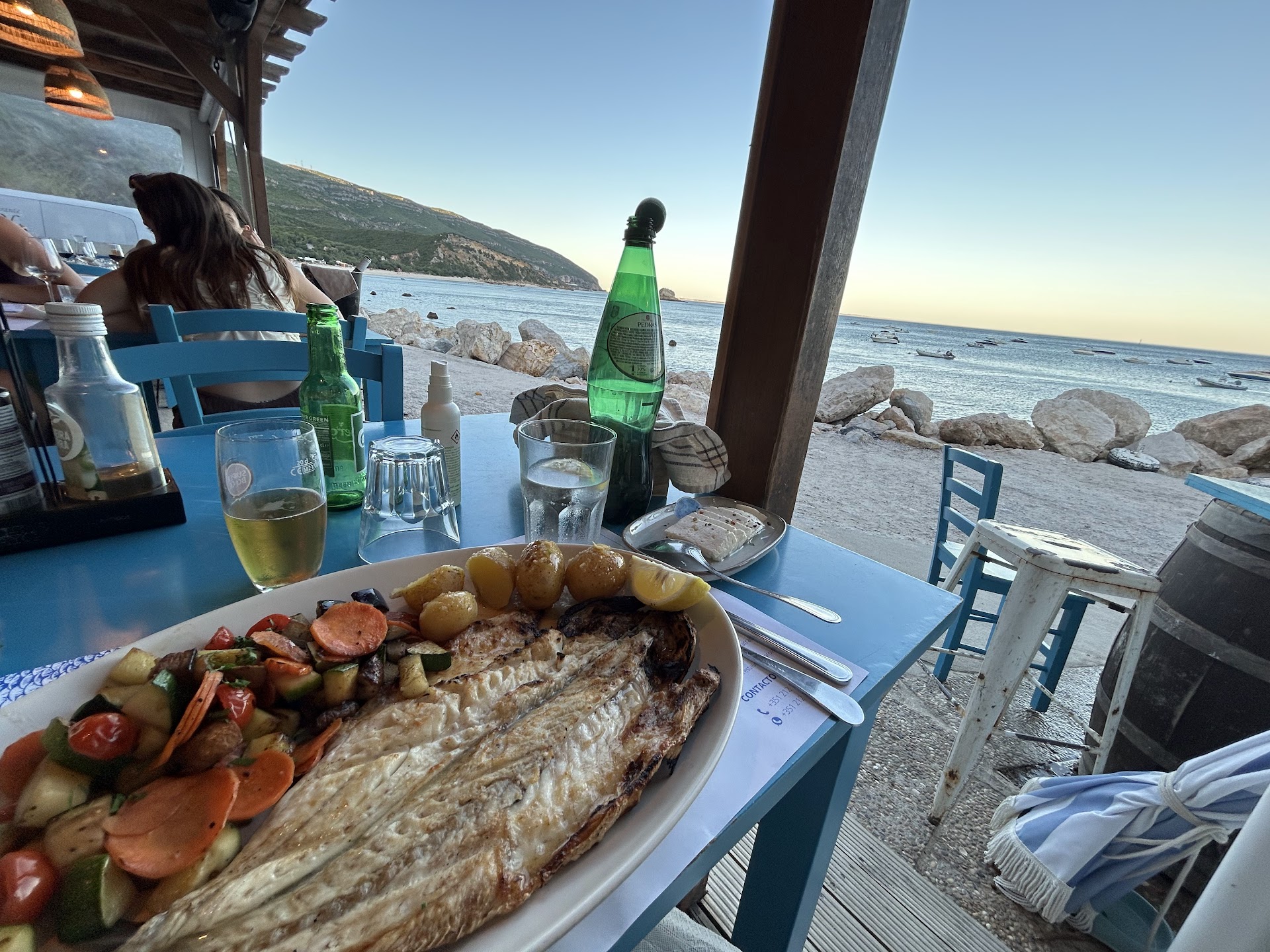 Read moreIf you like flavourfull and well done food, in other words- if you are a foodie, - I would not advice this place. But it is good for a glass of wine and view over arrabida bay. I had worst seafood rice ever. Unfortunatelly lack of flavour and shrimps had low quality too. First bread basket came warm and fresh, whereas second was not warmly baked. Along eith bread came different tiny patè, as well including egg yolk. Unpleasant surprise too. We were served by 4 different people from all one male servant was unpleasant and unpatient, throughout sharp expressions whilst attending us and way of speaking making our service less pleasant. I will not return because we enjoy a truly good quality food, and we do not find fair to pay 80€ for tastless rice. Parking is hustle, as portinho centre itself has some 20 parking places, so count on walking or...