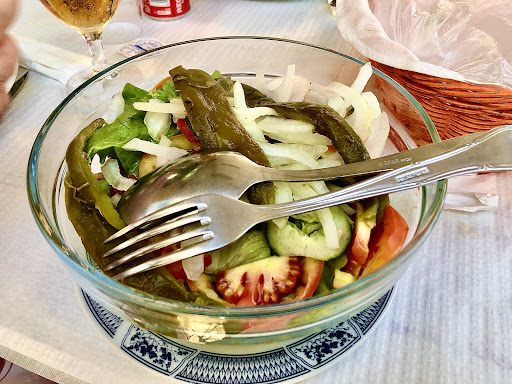 We ordered the usual condiments of bread, butter, and olives. For entree, we ordered Dorado and Porc Chops. We wanted a large salad, but the server told us that a small salad would be enough for two, which was.