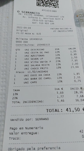 Read moreVisitei recentemente 'O Serranito', um fabuloso restaurante de rodízio de peixe em Setúbal, e fiquei completamente encantado com a experiência. Desde o momento em que entrei, fui recebido com uma simpatia contagiante da Sofia, cuja atenção e cuidado elevaram toda a experiência. O ambiente é acolhedor e autenticamente decorado, fazendo-nos sentir imediatamente à vontade. Quanto ao rodízio de peixe, foi simplesmente divinal. Cada prato que nos foi servido estava fresco, saboroso e perfeitamente preparado, realçando os sabores do mar. A qualidade e a variedade do peixe pescado no dia são de louvar, mostrando um verdadeiro respeito pela culinária tradicional portuguesa. Sem dúvida, 'O Serranito' é um tesouro de Setúbal que merece ser visitado por todos os que apreciam boa comida e um serviço excecional. Estarei certamente de volta para mais delícias e...