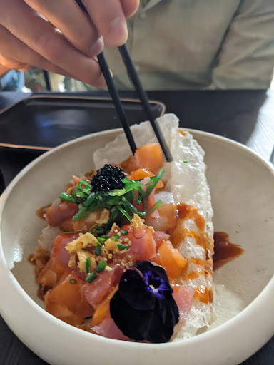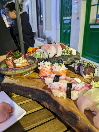 Read moreMy girlfriend and I, self-proclaimed sushi connoisseurs, stumbled upon this gem during our weekend getaway in Setubal, as it was close to our hotel. We had the chef's 40-piece special and a bottle of Vinho Verde (only can order by the bottle). The presentation was spot on - huge wooden board adorned with flowers. We were lucky to sit outside where the street was quiet but serene. Top points for the creative gunkan and mouth-melting sashimi. Our friendly waitress was attentive and chatty, we even had to postpone our evening plans by a hour to enjoy more sushi. This hidden delight is worth a trip to Setubal alone. 6 stars if I could. We...