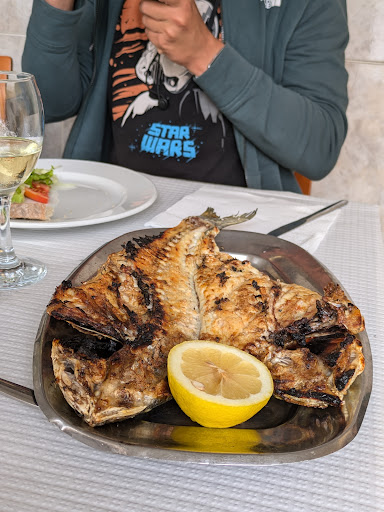 Wonderful place if you would like to have a real Portuguese experience. It is the place when locals eat. We arrived during the lunch time and it was full, but after 10-15 minutes we were seated. Our waiter was very nice and funny, although he didn't speak English, but together we managed it. The atmosphere was relaxed and noisy in a good way. We ordered a sea dourado for 2 and get a big and fantastically prepared fish with boiled potatoes and sweet potatoes, fresh salad and traditional bread porridge as sides. The price also include couvert (olives and bread), one drink (we get a 0.5 l of good white wine) and an espresso. And the prices are something. Muito obrigada and let your...