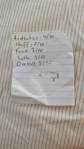 Besides the place itself not being very approachable, what makes me give this rating was the sushi. Which is always what we are looking forward the most. The fish didn't feel fresh, the rice was dry (like it was from the day before) and the cream cheese tasted off.