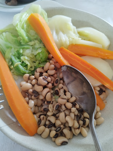 Recomendo se estiverem à procura de pratos de carne (vitela, cabrito, rojões) num restaurante típico com comida caseira e a um preço acessível. Infelizmente, não é muito vegan friendly (algo super compreensível, sim), mas já vi restaurantes tradicionais esforçarem-se mais para fazer um prato de vegetais. Fizeram um prato com feijão frade, hortaliça cozida e batata cozida. Apesar de ter pedido várias vezes para não ter nada de origem animal, veio na mesma com ovo. Penso que em visitas anteriores já fizeram cogumelos Portobello bastante bons. De sobremesa, a opção vegan era melão (maduro, mas não...