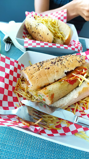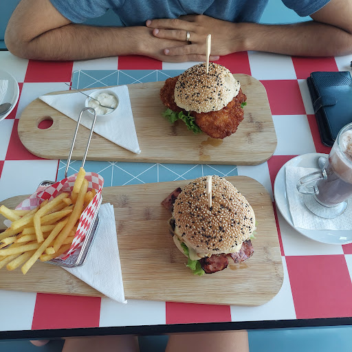 Burgers are the main offer, but there are salads, hotdogs, wraps and finger food options too to choose from. The dessert list is also generous, with a few a la carte options and several daily options on display. The brownie is a favorite and can be complemented with ice-cream. Plenty of shakes and smoothies and also cocktails. My favorite is the lemonade with ginger and peppermint. The drinks menu is through a QR code, so you'll need a phone. Otherwise the waiter can help you. Service is friendly and welcoming, with smiling waiters and a quick service. The space is consistently decorated with candy colored americana all over. Although the best is the generous outdoor seating, especially on warm summer afternoons.