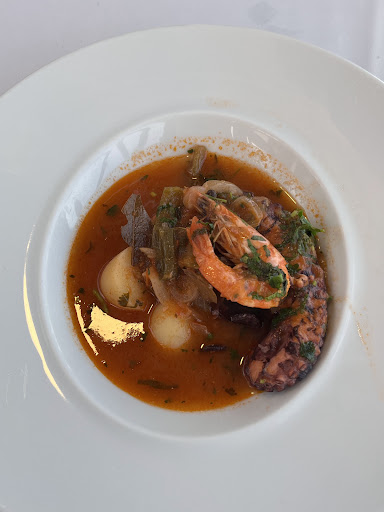 We had the “silver” seafood platter which has Oysters, Mussels, Boiled Prawns and Crab—everything tasted so fresh and the sauces were so delicious. The Octopus confit with smoked Sausages Polenta and Pepper Coulis was tender, the Sautéed Scallops with Apple Pickle and Lemon Gel is perfectly cooked, and Razor Clams in Bulhão Pato style is succulent and sweet. We also ordered the octopus with mussels and shrimp cataplana, and the portion size was very generous, great for 5 people, and the waiter distributed each plate with equal amount of octopus, mussels and shrimp. When we finished the meal, the sunset glow gave such a wonderful ambiance, with great food, old friends reunited, and pleasant conversation. It made the whole dinning experience more memorable. Highly recommend this...
