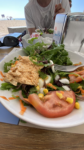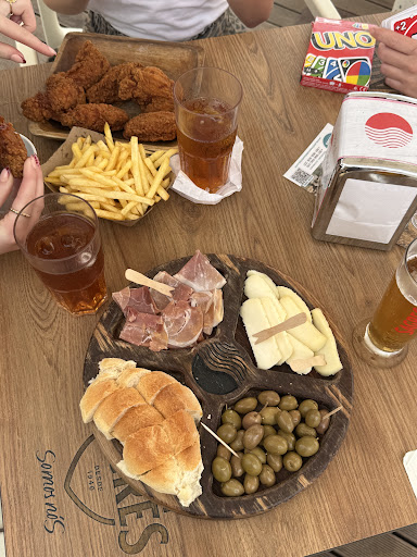 Lovely beachside bar with a relaxed atmosphere, we had a simple cheese and meat platter with bread and olives, fresh and tasty, and the kids loved their chicken wings. Probably the cheapest beer in the area (€1.50 for an imperial, it used to be €1 years ago). You order and pay at the bar, but food and drinks are served at the table. No toilets on site, you can use the public ones nearby (not the cleanest). Very friendly staff and great value for money, a perfect stop for a casual meal...