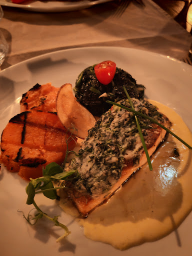 Already the entrance through the arch of grapevines gives a clear view of the secluded terrace and the restaurant, which is set back from the street. Clear and modern design in the restaurant with passage (4 steps) to the rear terrace. Otherwise everything is at ground level for wheelchair users. Here you can sit wonderfully in the shade of the evening sun. The selection of Italian dishes is excellent with antipasti, salads, fish, meat, pasta and risotto as well as delicious desserts. Carlos is the creative mind in the kitchen and prepares everything fresh. The wine selection is excellent. If you should wait a little longer for the food, there is a delicious greeting from...