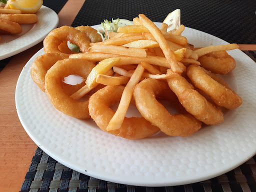 This is a very good fish and seafood restaurant right on the beach in Armação de Pêra. You can sit inside or out, in the sun or in shade. The menu is wide ranging and offers a good choice of both food and drinks. Our meals were delicious with perfectly grilled fish and wonderful starters of fish soup and clams. The white Sangria was yummy and the desserts looked very tempting although by then we'd eaten enough. The staff were so friendly, chatty and helpful in a busy and very popular restaurant. It isn't open in the evening so we had late lunches around 2pm both days and managed, just, to get a table. It's very popular as I mentioned. Quite simply, the perfect place for a very reasonably priced and...
