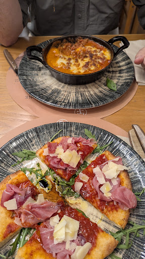 We enjoyed a quiet evening at this Italian restaurant. The atmosphere was pleasant and relaxing, perfect for an intimate dinner. The service was attentive and friendly, although there was a minor mix-up with our calamari order. However, the staff handled it promptly and professionally, which we appreciated. For our meals, my husband ordered the lasagna, which was absolutely delicious and served piping hot. I opted for the mini pizza with ham and cheese. The crust was excellent—crispy and flavorful—but I do wish the cheese had been melted more thoroughly during baking. Overall, it was a good dining experience with great service and tasty food. We’d consider returning and trying more dishes...