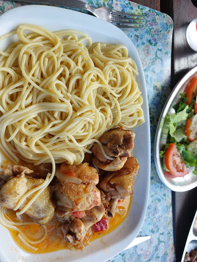 Traditional Portuguese cuisine. Been twice and both times they serve grilled pork. Wine is also included in the price. You can also ask for supplements. Lunch on the weekend costs 15 euros per person, and on weekdays 10....