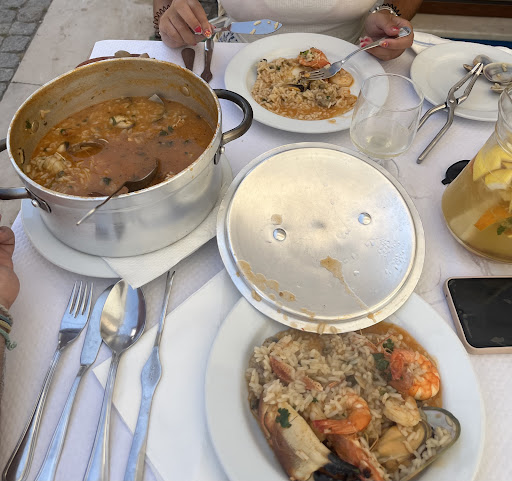 Read moreHemos llegado a las 13:30 y han tardado una hora y media en traernos la comida, son las 15: 40 y nos vamos sin pedir el postre ya que nuestros vecinos de mesa han esperado más de media hora por él. La comida gracias a Dios es aceptable, aunque los chocos parecían congelados, también pedimos calamar (lula) en este caso era fresco y a la plancha, un desperdicio de una materia prima que debía ser excelente pero no pudimos apreciar porque estaba tan tieso como una suela de zapato. La carne de cerdo bien, las patatas fritas también, no eran de bolsa. Los postres parecían caseros y muy abundantes, pero como he dicho no nos atrevimos a pedirlos. Por lo demás la decoración de local es agradable y está en un sitio estupendo. El precio normal, caro para lo que es Portugal, pero dentro de lo normal en este pueblo que se ha vuelto carísimo. Por suerte estábamos en el interior del local, ya que fuera en la terraza hay algunas mesas que estaban a la sombra al principio pero he podido ver cómo iba dando el sol a medida que pasaba el tiempo, y la gente que estaba fuera esperando tanto tiempo como nosotros se estaba abrasando al sol. En fin una experiencia lamentable en agosto, parece ser la tónica general en porto covo donde el turismo es mucho más masivo de lo que este pequeño pueblo está preparado para afrontar. Seguro que en otras épocas del año será mejor, pero una espera así si es imperdonable se mire por dónde se mire. A los turistas de porto covo les recomiendo qué cojan el coche y vayan a comer a cualquier restaurante de carretera cercano, dónde podrán comer estupendamente sin esperas y por un tercio del precio. A los que estén en los campings, como nosotros, les recomiendo que no hagan el primo y...