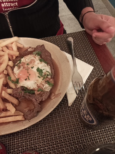 Read moreUm local com condições para ser muito agradável, mas que infelizmente padece de várias insuficiências... O serviço é simpático, mas muito lento e incompleto. Por exemplo, as mesas entre utilizações de cliente para cliente, não são desinfectadas. Em tempo de pandemia, a higiene preventiva deixa algo a desejar, porque práticamente não se vê, se é que de facto existe... À chegada, não é colocado nada na mesa, senão uma base de plástico entrançada (pouco higiénica, pois o entrançado tem reentrâncias) para o prato, o prato, dois talheres e um guardanapo de papel, por cada pessoa. E assim fica até chegar a refeição pedida. Só é servido, literalmente, aquilo que é pedido. Os bitoques, por exemplo, não são maus, mas não têm nada de especial... Não são martelados, nem têm nenhum tempero ou molho especial... prato vulgaríssimo, sem qualquer toque de originalidade... Por fim, a sobremesa escolhida, Cheese Cake, estava uma obra de arte. Muito boa, mesmo. Uma coisa que também pode causar incómodo é a inexistência de pagamentos...
