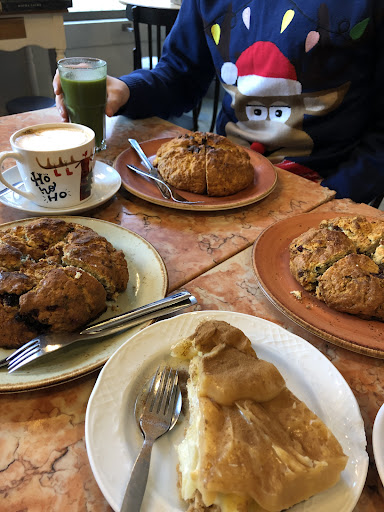 Read moreAmazing food and drinks, even better service! Even though it’s Christmas Eve, nobody was skimping on quality (or quantity). To drink, we had 2 lattes, a glass of milk and a green juice for the 4 of us. The juice was excellent (very refreshing) and the lattes better than the majority here in Portugal. We ordered 2 berry scones, 1 chocolate scone, and a slice of apple and walnut cake. Due to no fault of the restaurant, somebody just managed to get the last slice of cake before us, so we ordered apple pie instead. No disappointments whatsoever, absolutely massive portions (we eat a lot and left over half a scone), the scones were fluffy with a nice crusty outside but still not dry on the inside, the sweetness of the condensed milk on the pie perfectly balanced by the fresh apple slices. Would definitely come here again, particularly grateful to our server whose name we didn’t get (and who complemented our jumpers). Excellent English...