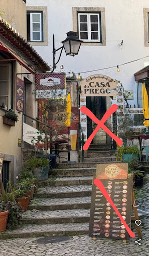 DO NOT confuse it with Casa Prego, which is wedged between Cantinho Gourmet. Please refer to the photo I've attached, crossed out in red (a no-go zone). At first, I thought it was the same restaurant, but what stood out was the rudeness of a lady (owner) standing by the railing in front of "her" restaurant (casa prego) with a fake smile. Life must have dished her the wrong plate in life...What a sour person!