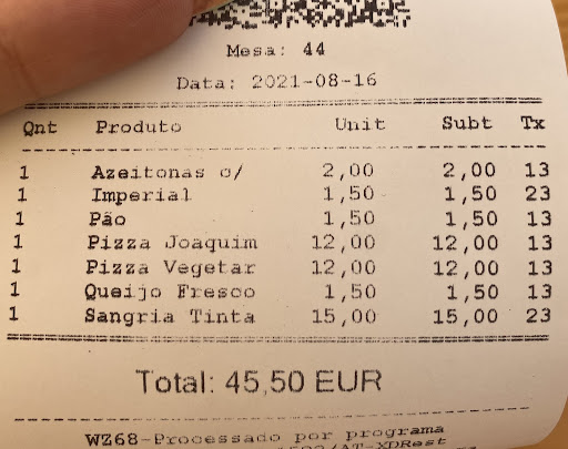 Read morePizza is very good and restaurant has a beautiful setting. Service, on the other hand, is horrible. They bring you olives, bread and cheese as soon as you sit down (yes, without asking you if you want it) but don’t let you know there’s an extra €6 charge for them. Waiters were rude and we had to call them constantly and repeatedly for menus/questions/check. 45€ for two pizzas and sangria (plus all of their extras)....