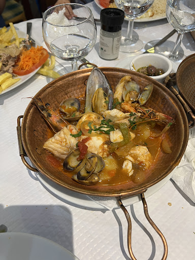Speaking of, the food was fantastic. This is my family’s 6th day in Portugal, and this was our best meal by a long shot. I had the Caldeirada de Peixe served in a copper pot, and my wife had the stewed lemon chicken. Both were great, but the Caldeirada de Peixe was next level and bright.