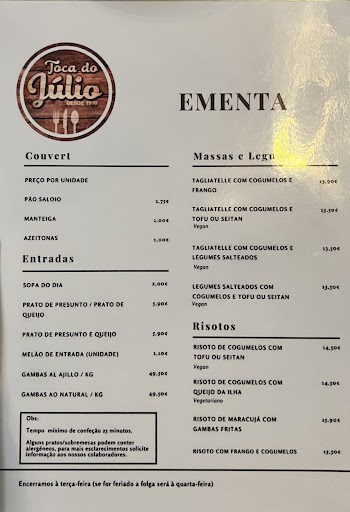 Read moreUpon our tour of Portugal, we ended up at this restaurant for lunch. Having tried quite a few local restaurants with fresh seafood, Julio’s tapas (Toca de Julio) did not disappoint. Quite a large restaurant with indoor and outdoor seating. Advisable to make a reservation as it was full when we got there. The ambiance is very ranch like which gave it a homey feel. Staff speaks little or no English which didn’t really make a difference to our ordering and service process. Both wine and food were very well priced. Good value for money. The food was excellent and very much on point. I had the garlic octopus (cant get enough of this in Portugal). Our daughter ordered the fish. We washed down the food with a very pleasant Bio white...