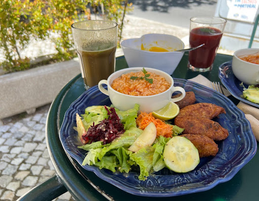 Read moreWow! So charming and so delicious. Home recipes made with great skill and delivered with unexpected beauty. I was not expecting it to be this delicious and was happy to support a vegan place out in Sintra while we toured. Such a lovely surprise. We had the special which was a crème of chickpea soup and a Japanese curry katsu (tofu) and Chela had the beet burger. All was great but the coup d’tat was the spinach cake with chocolate frosting! So moist, so good, so...