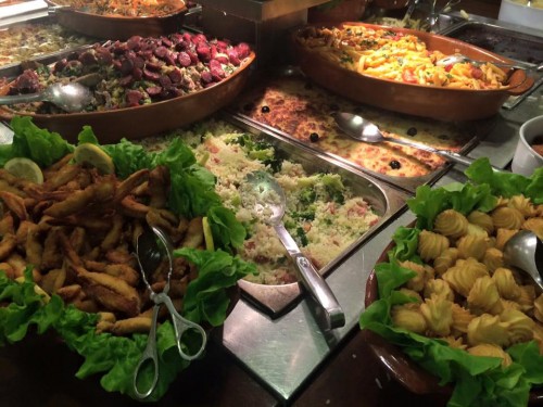 É rodízio/ buffet mais barato ao almoço mas o jantar fica por 9,50€. Pode comer à descrição. Apreciei bastante a diversidade/variedade e qualidade de pães, pratos, churrascos, saladas, frutas e sobremesas, assim como todo um couvert disponivel nas vezes que quiser. Tanto que consegui uma boa diversidade sem comer carne. A única questão são as bebidas pagas à parte , assim como as sobremesas. Mas, regra geral o serviço Buffet segue estas regras.