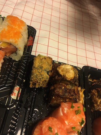 O sushi que vinha no menu é do mais básico que existe, só existia uma peça que destoava das restantes, tinha centro de salmão, arroz, alga e salmão no fim e depois panado e de seguida frito com um salpicadela de queijo creme ( acho que era queijo creme ).