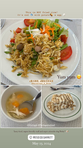 May 23, 2024 We had bacalhau à brás (salted cod, eggs and potatoes), one of the most famous and classic Portuguese dishes, for lunch. It resembled fried rice at first sight, but it tasted far from it and was really delicious! While waiting for dessert, my dad told me that he saw a dog behind the counter, so I immediately went to check out the dog. However, he seemed to be sleeping and I could only see his back from a distance. Therefore, I decided to come back later. To my surprise, a man who seemed to be the restaurant owner came up and beckoned “come over” to me as soon as I returned to my seat. I happily followed him behind the counter, and the friendly dog came close to me with a wagging tail. He instantly melted my heart. Even though it’s been nearly a month, the amiable staff and cute dog Boby still bring a smile to my face as I write this. Thank you...