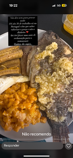 Read morePéssimo restaurante africano, já comi em diversos restaurantes africanos e nunca tinha comido uma comida assim, chegamos praticamente a 13h e a cozinha ainda não estava preparada, tivemos 2h à espera, a muamba de galinha estava dura e era basicamente pescoços sem sabor, o mufete era peixe congelado e da pior qualidade, tudo sem sabor e mal executado, tiveram outros clientes a reclamar após 2h de espera e com reserva do prato ainda não tinha vindo para a mesa. Atendimento super lento e demorado, não tem menu físico no restaurante, os atendentes nem sabem os pratos que tem no restaurante, uma vergonha. Não recomendo mesmo nada e deveriam...