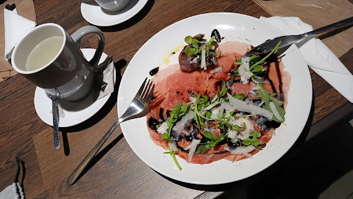 Very welcoming staff, rather modern ambience and relaxed, not too loud modern music in the background. We had a pizza funghi, which was very delicious, the Carpaccio which I very much enjoyed and the cauliflower al forno. This one needs a little more explaining. What I expected was something like a casserolle dish with cauliflower and baked cheese on top. Turns out, you get exactly what it says in the menu - an entire cauliflower from the oven. That's it. There is some oil in there but nothing else from what I tasted. They served a bottle of Aceto Balsamico dressing (not the pure vinegar) with it and so I ate the cauliflower with the dressing. It was alright like that, just not what I had in mind when I ordered it. When I mentioned my feelings toward this meal to the guy who turned out to be the owner he retracted its price from the bill, offered me some free dessert and thanked me for my honest feedback. I liked his reaction a lot and I liked the...