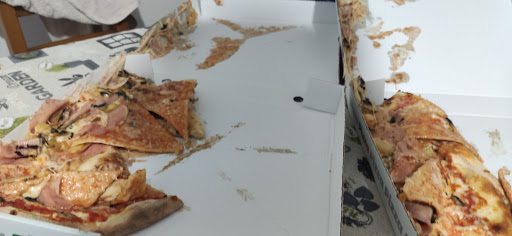 Resolvi contactar a pizzaria para terem o feedback principalmente do estafeta, fui então contactado por esta pizzaria que me diz que é normal e frequente as pizzas que vendem através dos parceiros chegarem neste estado aos clientes. Diz que estão a par e que nada podem fazer, que a culpa é do cliente, que em vez de encomendar diretamente a loja, prefere encomendar através da plataforma da qual a loja escolhe ser parceiro.
