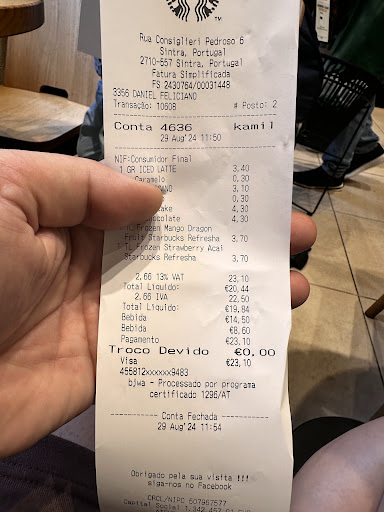 My latte today was of good taste and no different from previous Starbucks experiences. Good taste and enjoyable. However in all my other experiences the baristas have always tried to make good conversation and were exceedingly polite. The two ladies who were on duty at the counter made the entire experience unpleasant for all customers. One girl kept shouting at customers. Aside from that, she was also busy chatting with the other lady. As I approached the counter, I tried to call out "Ola" but to no success. Eventually they decided to stop their chat and one lady gave me an unpleasant look AND was curt and very abrupt when taking the order. I've never ever been treated this way in Starbucks worldwide. This is my third Starbucks experience in Portugal and by far my WORST experience in any Starbucks worldwide. However due to its location in Sintra I'm very sure it will continue to draw...