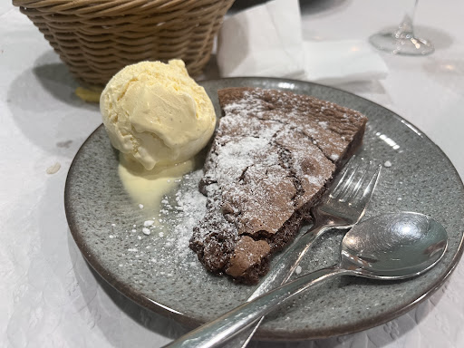 Excellent lunch: one of us had the dish of the day, the other a specially-made vegetarian meal; both were delicious. Followed by a choice of desserts. Even with drinks, it came to well under €30: excellent...