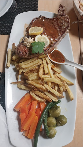 Great food and friendly staff! Some English speaking staff. Dog friendly on the outdoor patio area. Grear atmosphere at the right time of day (early afternoon and after 7pm). Kitchen opens at 7pm. I've been in Portugal for over a month and they had the thickest, cheapest, and best steaks so far! Swimming pool and football pitch beside the restaurant. Well...